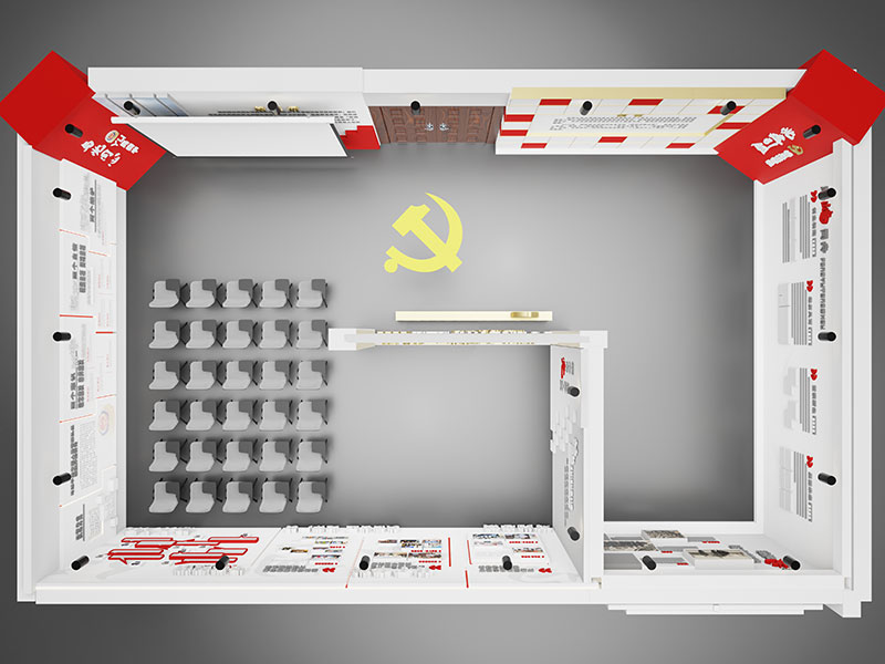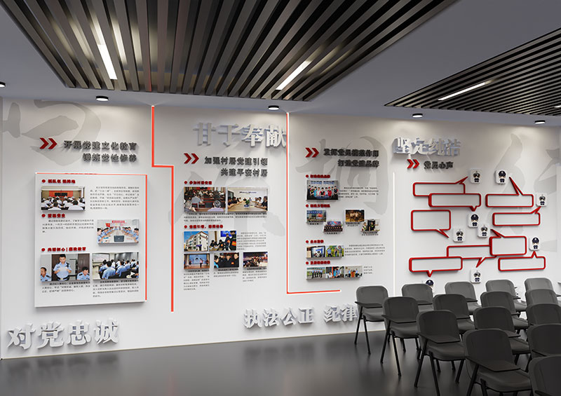 将红白两色定为党建展厅的主色调,将红色文化与现代文明相结合。