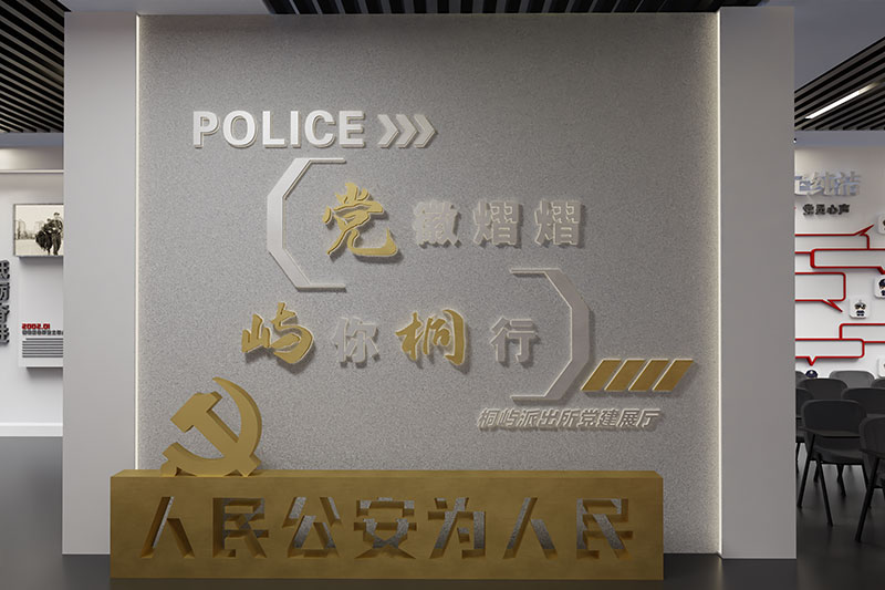 为了让观者迅速进入情境,在入口处设置主题墙“党徽熠熠 屿你桐行”,增强设计感与观赏性。